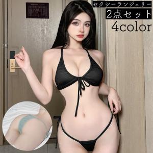 セクシーランジェリー 2点セット レディース ブラジャー ショーツ 紐パン 単色 セクシーコスチューム 水着風コスチューム ビキニ セクシー 可愛い