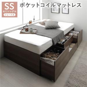 ヘッドレス チェスト ベッド ショート丈セミシングル ブラウン 3ゾーンポケットコイルマットレス付 引き出し 収納ベッド