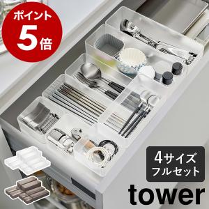 [ 縦横重ねられる引き出し整理収納ケース タワー 4サイズセット ]山崎実業 tower 8個セット yamazaki 白 黒 3640 3641 3642 3643 3644 3645 3646 3647