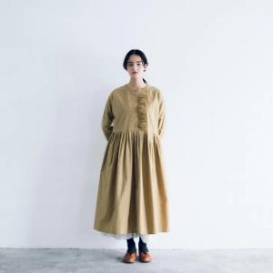 MAGALI | ピグメントダイコットン・フリルワンピース (ベージュ) | マガリ ドレス フリル