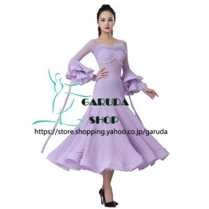 Garuda SHOP レディース社交ダンスドレス モダン競技ドレス ワルツドレス高級品 発表会用高品質ドレス セミオーダー可 パープル 品番2539