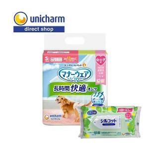 【今ならシルコットウェットプレゼント】8個セット ユニチャーム マナーウェア 4520699693742長時間快適オムツ女の子用 S32枚