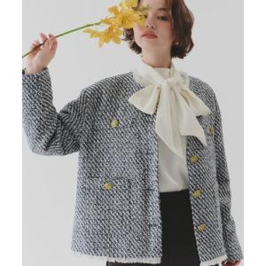 ティティベイト titivate ノーカラーツイードジャケット (オフホワイト/ブラック)