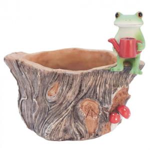 ティーライフ コポー 置物 切り株プランター カエル 621553