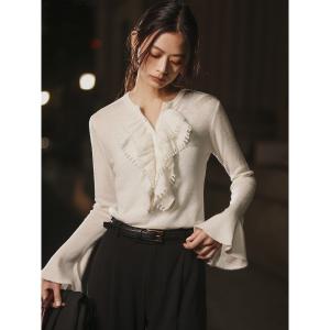 カーディガン 「袖口レース・着映え」短毛モールペプラム カーデ レディース