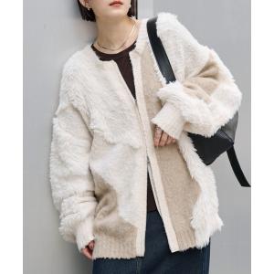 カーディガン 「ウォッシャブル」2WAY ふわもこボリューム シャギーMIX ダブルジップニットカーディガン レディース