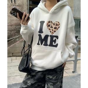 パーカー パーカー I LOVE ME レオパード柄 ハート オーバーサイズ フーディー レディース