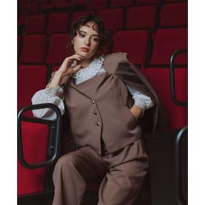 セットアップ レイヤードデザインジャケット3点セットスーツ(ジャケット+アシメデザインビスチェ+ワイドパンツ)「Callarus」 レディース