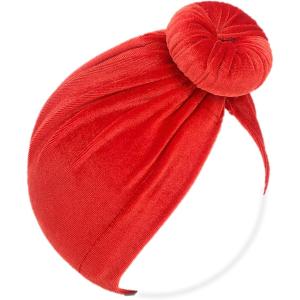 ベロア ベルベット ターバン ヘアーバンド ヘアバンド ヘッドバンド ニューボーンフォト 頭 保護 帽子 リボン 春夏秋冬 (レッド)