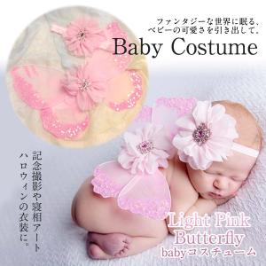 コスチューム 写真撮影 記念写真 赤ちゃん 羽 蝶 ヘアバンド 花 セット ピンク 新生児 ニューボーンフォト フォト