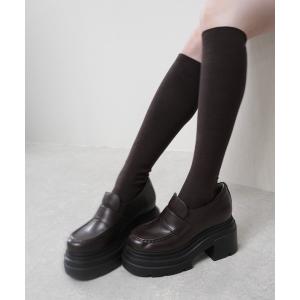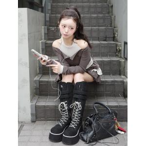 ブーツ ストレッチレースアップロングブーツ 厚底 靴 秋服 レディース