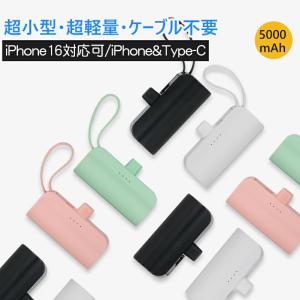 モバイルバッテリー iPhone Android 小型 超軽量 大容量 スマホ充電器 5000mAh コードレス スマホ 携帯充電器 ケーブル内蔵 スタンド付き 残量表示 PSE認証済み