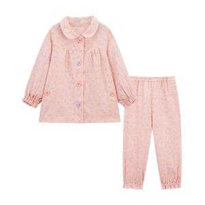 パジャマ おなか安心ボタン付き長袖前開きガーリーガーゼパジャマ(小花) キッズ 子供 女の子