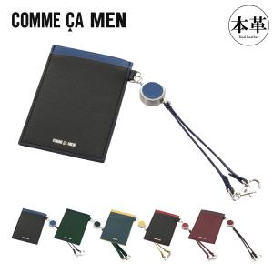 コムサメン パスケース メンズ コール 6826 COMME CA MEN カードケース 定期入れ ストラップ付き 牛革 本革 レザー リール付き 縦型 icカード