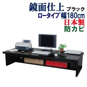 パソコンデスク ロータイプ 机 つくえ おしゃれ デスク 収納 パソコンラック ローデスク 幅180cm 奥行74cm 高さ38cm 木製