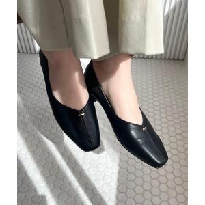 パンプス フラットシューズ レディース スクエアトゥ Vカット ローヒール 柔らか カジュアル アミアミ