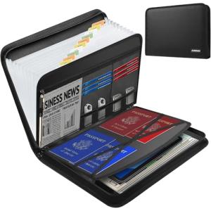 JUNDUN ファイルケース、A4 耐火ドキュメント ジッパーとラベル付き重要書類 整理ケース、12 ポケット大容量紙アコーディオンー レター