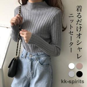 ニットセーター レディース ニットカットソー 長袖 インナー リブハイネック タートルネック トップス セーター リブ ハイネック 伸縮性 暖か 無地