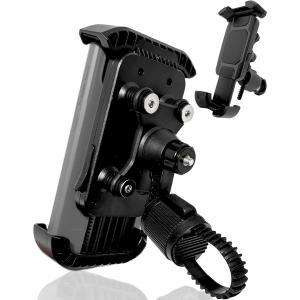自転車 スマホホルダー バイク 日本企業 プロ監修 工具不要 落下防止 耐久性 防水 (ブラック, 振動吸収/取付径10-45mm対応)
