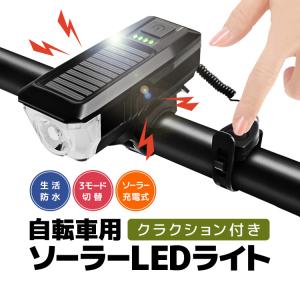 自転車用ソーラーLEDヘッドライト クラクション付き 高輝度350lm 生活防水 ライトモード切替 USB充電対応 バッテリー内蔵 自転車ヘッドライト SCLED335