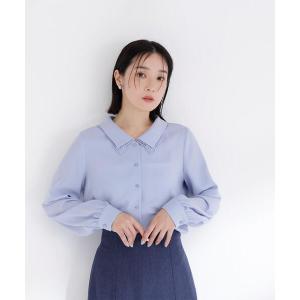 ブラウス シャツ ワンポイントビジューボタン長袖ブラウス レディース