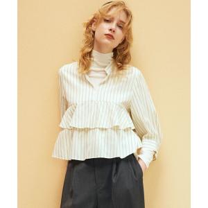 ブラウス シャツ ランダムシアーストライプクロスフリルブラウス レディース