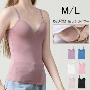 カップ付きインナー タンクトップ キャミソール 綿100% インナー カップ付き ブラトップ 締め付けない ノンワイヤー メール便送料無料