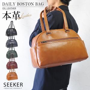 本革 ボストンバッグ メンズ 大容量 出張 旅行 ゴルフ 通勤 バッグ 軽量 ジム スポーツ 2way 手持ち ショルダー 自立 底鋲 人気 大人 2泊 3泊 SEEKER シーカー