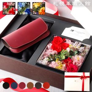 メガネケース 革 名入れ プリザーブドフラワー ギフトセット 花 フラワー ギフト プレゼント 誕生日プレゼント 還暦 祝い 結婚祝い 誕生日 女性