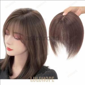 前髪ウィッグ 自然 部分ウィッグ かつら20cm 人毛100% トップピース レディース ショート ミディアム 頭頂部 つむじ 分け目 トップカバー ヘアピース