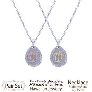 ハワイアンジュエリー ペアアクセサリー ペアネックレス ホヌ ネックレス ペア 金属アレルギー ステンレスネックレス カップル お揃い
