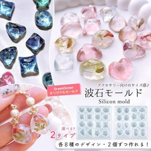 シリコン型・モールド 波石 S ペア8種 シリコンモールド レジン型 水面 波 きらきら アクセサリーパーツ UVレジン クラフト GreenOceanオリジナル♪ 選べる2種