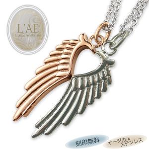 ペアネックレス ステンレス 刻印 合わせ ハート フェザー 羽 サージカルステンレス ネックレス ペア ピンク ブラック ローズゴールド ペアアクセサリー 名入れ
