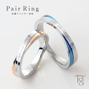 ペアリング ステンレス 刻印無料 結婚指輪 ペア 安い リング ブルーダイヤモンド 指輪 ひねり アレルギー対応 名入れ メンズ レディース サージカルステンレス