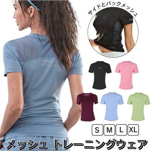 ヨガウェア レディース 半袖 Tシャツ メッシュ スポーツウェア 涼しい かわいい ホットヨガ 吸汗速乾 軽量 マラソン