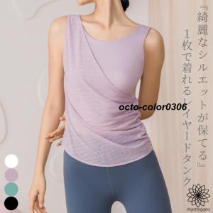 ヨガウェア ピラティスウェア ピラティス ウェア トップス タンクトップ ホットヨガ ロング丈 丈長 アシンメトリー フィットネスウェア ヨガ スポーツウェア