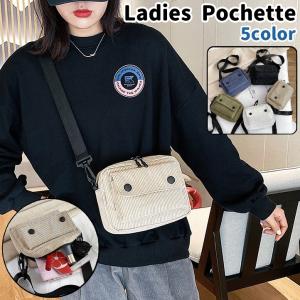 ポシェット 小さい コーデュロイ ショルダーバッグ レディース 婦人 男女兼用 バッグ カバン 鞄 肩掛け 斜め掛け 黒 白 カーキ色 青 緑 シンプ