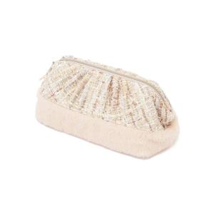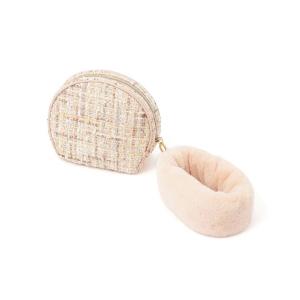 ポーチ ツイードファー ワイヤーポーチ ライトピンク レディース