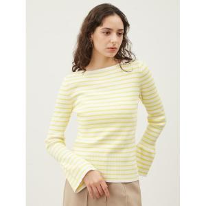 ニット セーター 前後2WAY袖フレアボーダーニットトップス「手洗い可能」 レディース