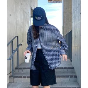 ブラウス シャツ チェックルーズシャツ(kiharu select) / チェックシャツ シアーシャツ シアートップス シースルー メンズライク 長袖