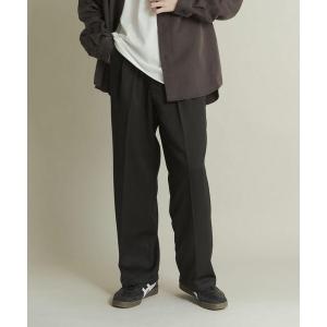 スラックス ウールライクダブルタックワイドパンツ メンズ