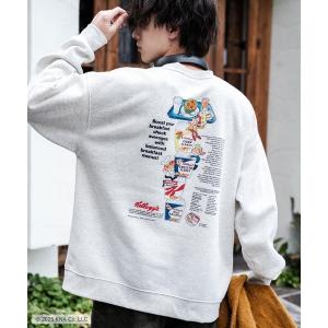 トレーナー スウェット Kellogg's 別注コラボ オーバーサイズヴィンテージライクグラフィックプリント裏起毛スウェットトレーナー メンズ レディ