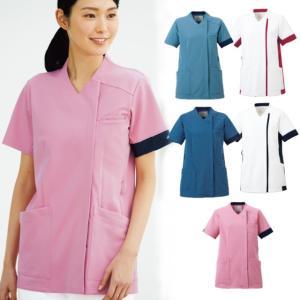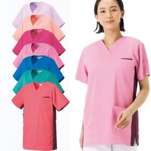 HS8071 オンワード スクラブ 白衣 ラフィーリア Raffiria 男女兼用 半袖 サイドファスナー 接触冷感性 ストレッチ