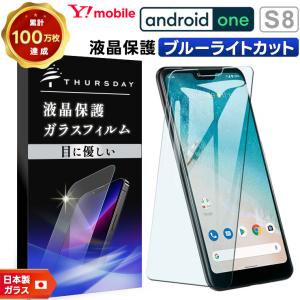 【ブルーライトカット】 Android One S8 ガラスフィルム 強化ガラス 液晶保護 飛散防止 指紋防止 硬度9H 2.5Dラウンドエッジ加工 ワイモバイル アンドロイドワン