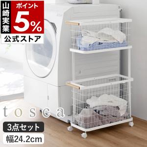 特典付[ ランドリーワゴン+バスケット トスカ スリム ]山崎実業 tosca ランドリーバスケット 大容量 ランドリー収納 木目 yamazaki 公式 ホワイト 10379