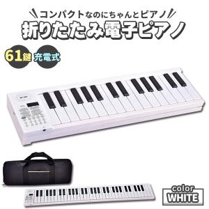 電子ピアノ 61鍵盤 電子キーボード 折りたたみ 61キー 充電式 ピアノ ホワイト 白 キーボード デジタルピアノ 収納ケース 折り畳み式 収納バッグ