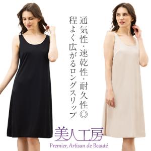 シンプルスリップ 2色セット ロング丈 ラウンド型 M L LL ベージュ ブラック 寝るとき ランジェリー 下着 通販 レディース 美人工房
