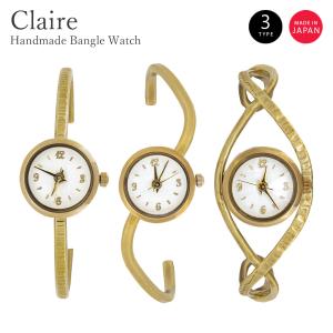 日本製 腕時計 レディース バングル ウォッチ ブレスレット クォーツ ゴールド 真鍮 女性 刻印