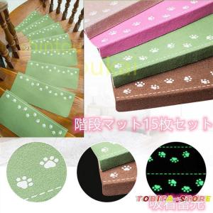 階段マット おしゃれ 滑り止め 吸着蓄光 15枚セット 水洗いOK 滑り防止 キズ防止 防寒 蓄光 夜間/停電対策 ペット・子供・老人用 折り曲げ付