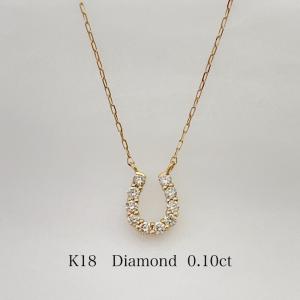 18金 K18 ネックレス ダイヤモンド 馬蹄 ホースシュー 0.1ct レディース ジュエリー ゴールド 小さめ 馬蹄ネックレス